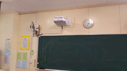 前の黒板へパソコンやタブレットの画像や文章を投影できるように、