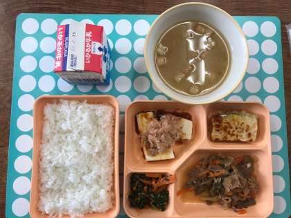 給食の冷ややっこは、一度ゆでたとうふを冷やしたものです。