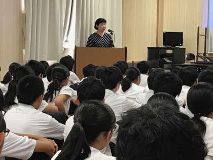 本日4時間目、3年生では、本校薬剤師の方に来ていただき、薬物濫用防止についてのお話をして頂きました。