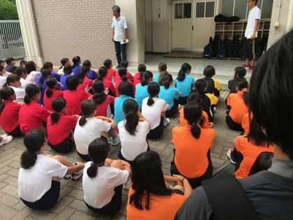 本日テニス部は、豊崎中学校において行われている、中体連第1支部審判講習会に参加しています。