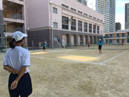 女子テニス部は本日天満中学校において、第1支部大会を行っています。