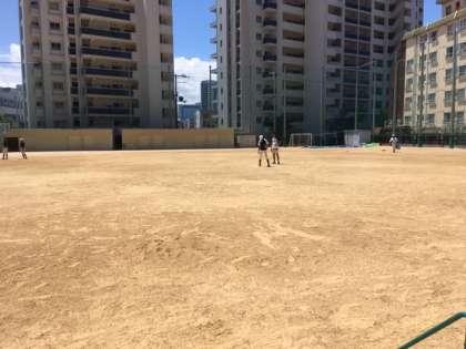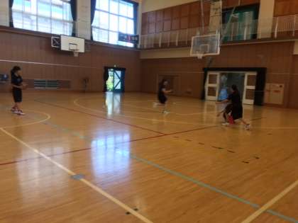 グラウンドでは野球部、体育館では女子バスケットボール部が活動しています。