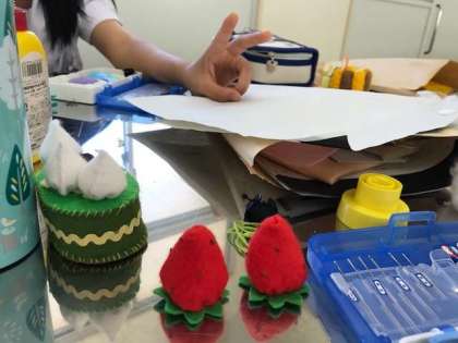 今日で夏休み最後の部活動でした。手芸と茶道に分かれて、総合文化祭に向けた共同作品や個人作品の製作をしました。