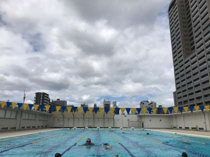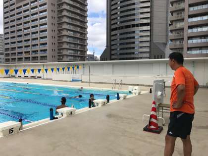 お盆休みの時期ですが、水泳部が一生懸命泳いでいます。