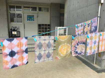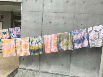PTA成人教育で皆様が製作されました作品です。優しい色合いで良い感じに染め上がりました。