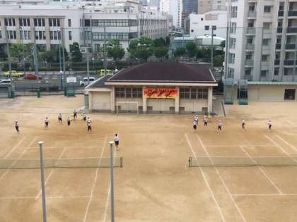 本日より、格技室横に体育大会の横断幕が掲げられました。