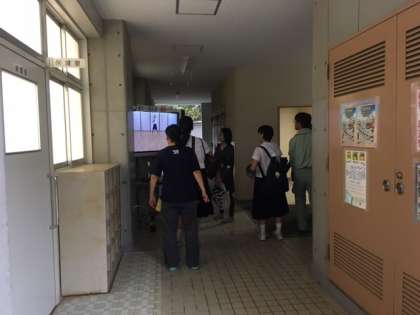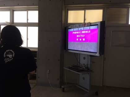 保健室前に保健委員が作成した、救急処置法の動画が流れています。