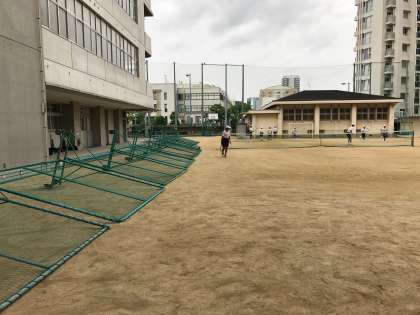 明日、台風の接近が予報されているため、昨日のうちにグラウンドの強風対策をしました。