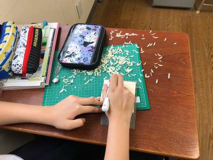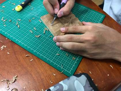 校歌の彫刻、作業が追い込みです。