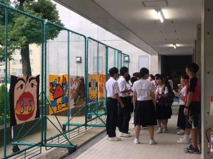 登校時、立ち止まり真剣に見る生徒がたくさんいました。