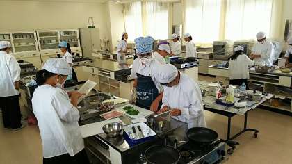 1年生での家庭科調理実習を行っております。