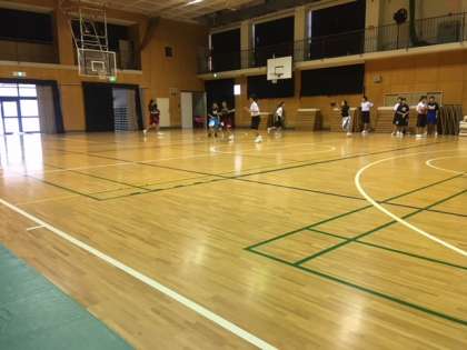 女子バスケットボール部は友渕中学校にて、合同練習です。