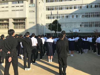 本日の全校朝礼では、校長先生より、先日の「津波の日」にちなみ、津波や地震にまつわるお話がありました。