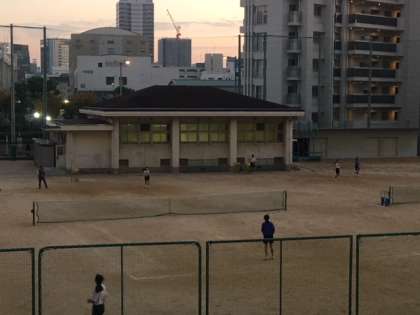 グラウンドでは女子テニス部がボールが見える時間までは練習しています。