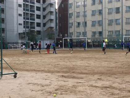グラウンドでは男子テニス部、サッカー部、野球部、体育館ではバスケットボール部が練習していました。