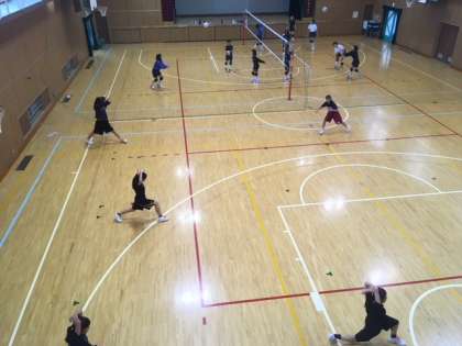 体育館では、バレーボール部と女子バスケットボール部が練習していました。
