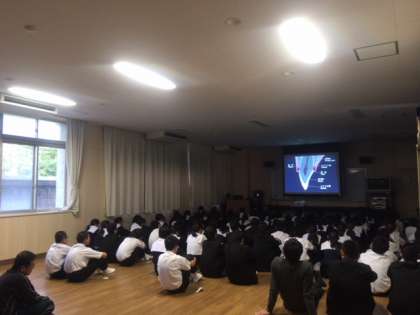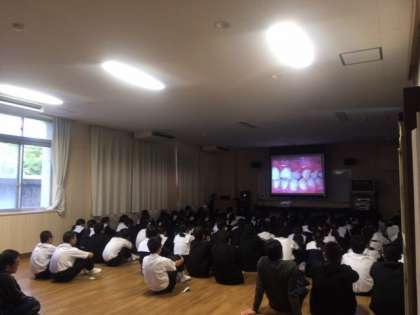本日6時間目、1年生は多目的室にて歯と口の健康教室を行いました。