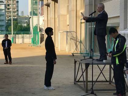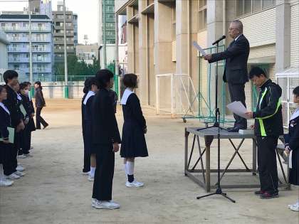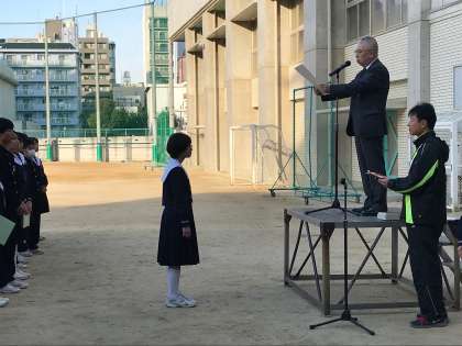 さらに、11月の遅刻0月間の、優秀クラスの表彰を行いました。