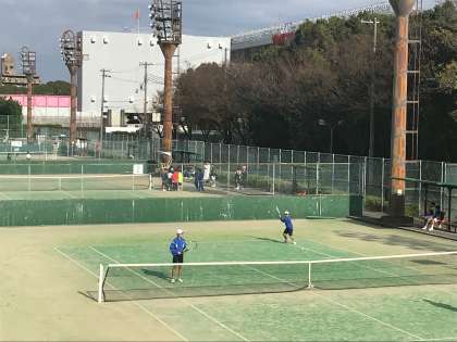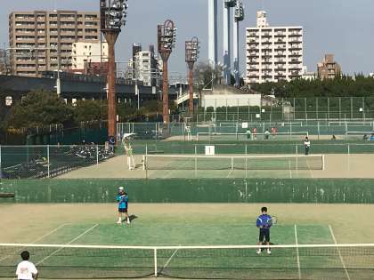 本日男子テニス部は、長居庭球場において行われている「大阪市中学生初心者ダブルステニス大会」に出場しています。
