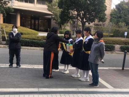 登校時の生徒会による募金活動の様子です。