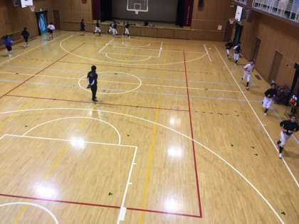 体育館ではバスケットボール部と野球部合同で30分間走を行いました。
