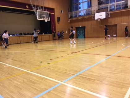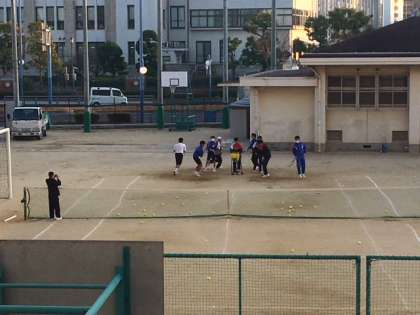 グラウンドでは男子テニス部が、体育館ではバスケットボール部が活動していました。