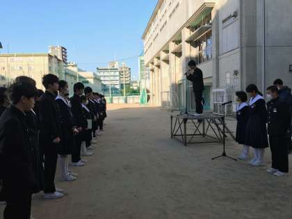 本日の全校朝礼、選挙管理委員会より、来年度前期生徒会役員選挙の告示がありました。