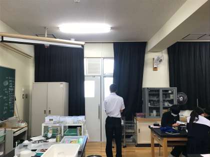さらに、工夫して教室の体積をはかり、教室内全体の水蒸気がどれだけあるかも見積もりました。
