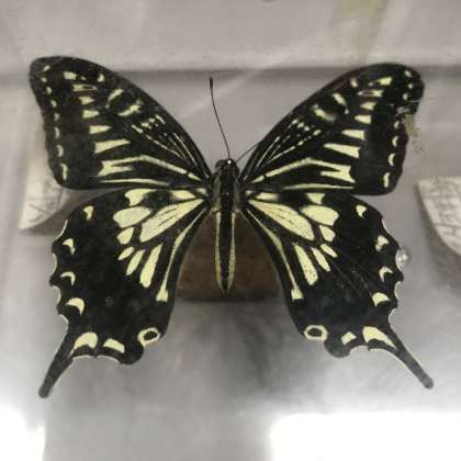 本校3年生徒が小学校3年生の時に製作した昆虫標本です。羽がきれいに張った状態で保存されています。