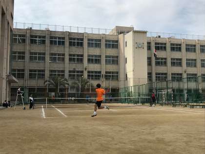 男子テニス部は二週間後の春季大会団体戦に備えて、本日は大淀中学校へ練習試合に来ています。