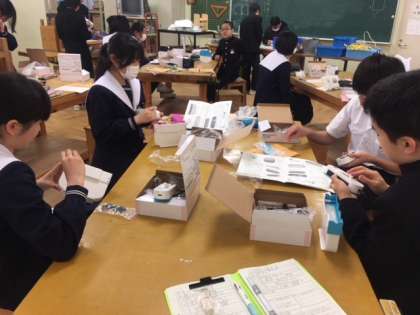 2年生の技術科の授業では、ラジオ作りを行いました。