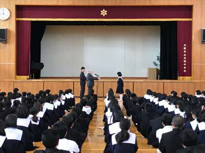 バレーボール部の伝達表彰がありました。