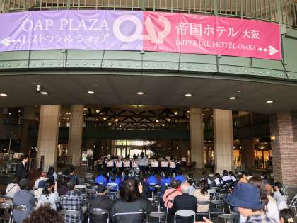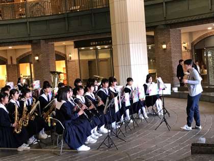 只今、吹奏楽部がOAP広場にて、コンサートを行っています。