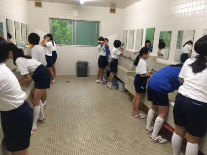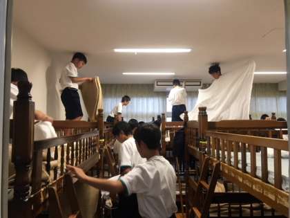 起床後、朝の準備の様子です。寝具の整理や洗面です。
