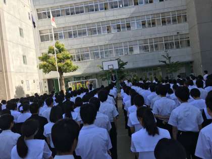 校長先生のお話に続いて、バレーボール部のブロック大会についての表彰がありました。