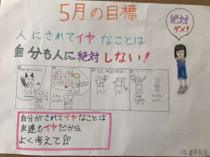 1年生の委員長会で決まった、5月の目標です。5月が過ぎても、ずっと守り続けなければならない大事な目標ですね。