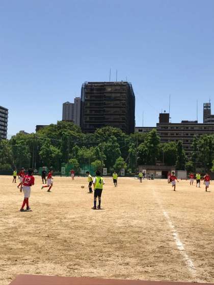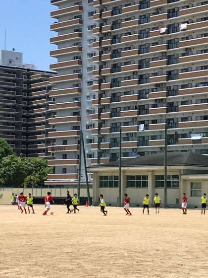 本日、サッカー部が新豊崎中学校にて試合に参加しています。