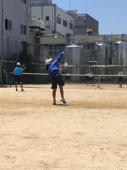 真夏のような気温、快晴の空の下、一生懸命にボールを追っています。