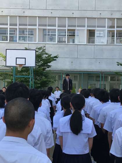 本日の全校朝礼において、2年生の国語科教員として着任された綿芝先生より、着任の挨拶がありました。