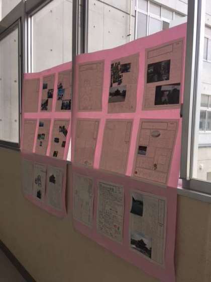 3年生の廊下には修学旅行の壁新聞を掲示しています。