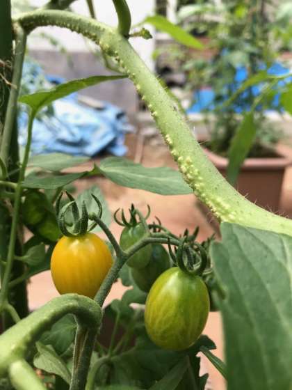 植えつけた時に緑の小さな果実だったものが、黄色くなってきました。