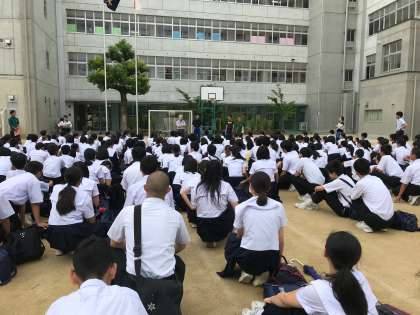 直下型地震で本校も震度6弱の揺れを受けましたが、身を守り直ちに避難し、登校生徒はみんな無事です。