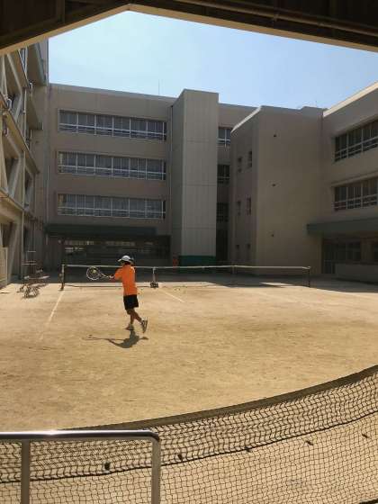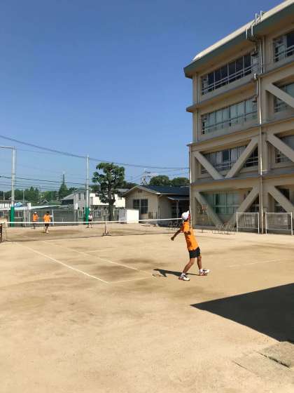 男子テニス部は本日、茨木市立三島中学校において大阪府選手権大会の団体戦です。