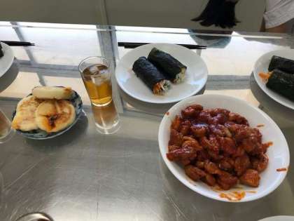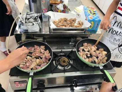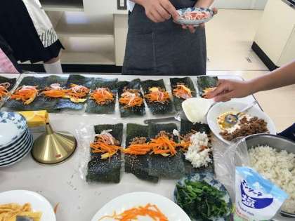 本日、家庭科部では、各グループごとに分かれて、韓国料理のキンパ、ヤンニョムチキン、ホットクを作りました。一つひとつの調理作業はひと手間ひと手間が大変でしたが、どのお料理も美味しく、満足のいくものとなりました。