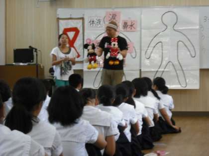 5・6時間目に、NPO法人HIVと人権・情報センターの方々を講師にお迎えして、「AIDSを通して、皆さんに考えて欲しいこと・性感染症とその予防法・中絶・デートDV」などについて、お話しいただきました。このお話を通して、自分自身と将来の大切なパートナーの心とからだを大切にすることを学習しました。