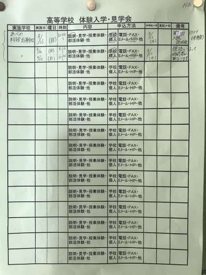 高等学校の体験入学・見学会の案内です。