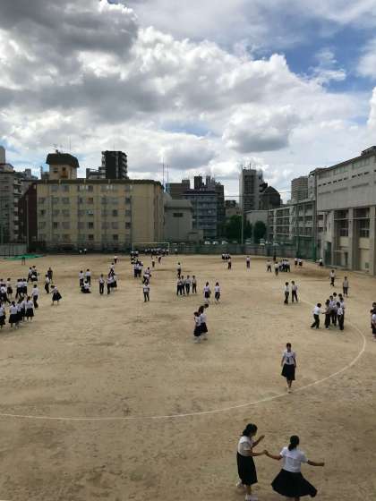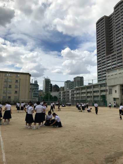 グランドにはものすごくたくさんの生徒が集まり、石拾いに励みました。