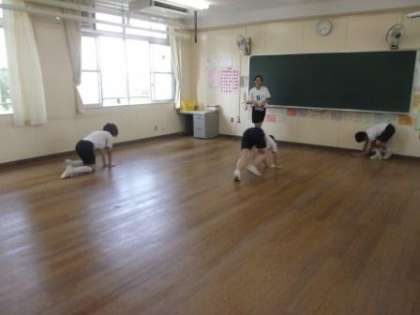まずはじめに、教室の机や椅子をすべて廊下に並べ、その後床を何度も掃いてきれいにします。