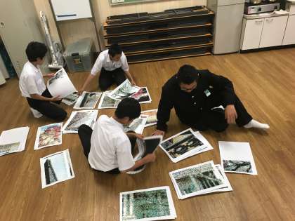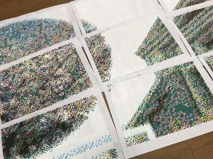 一年生の共同製作「巨大モザイク画」の集積作業がいよいよ始まりました。