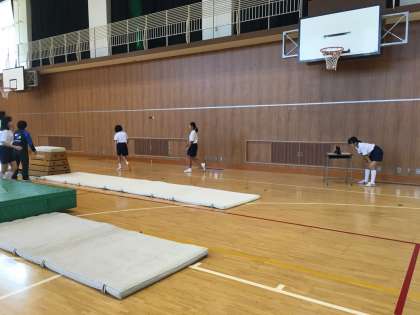 体育の授業で跳び箱を行なっています。